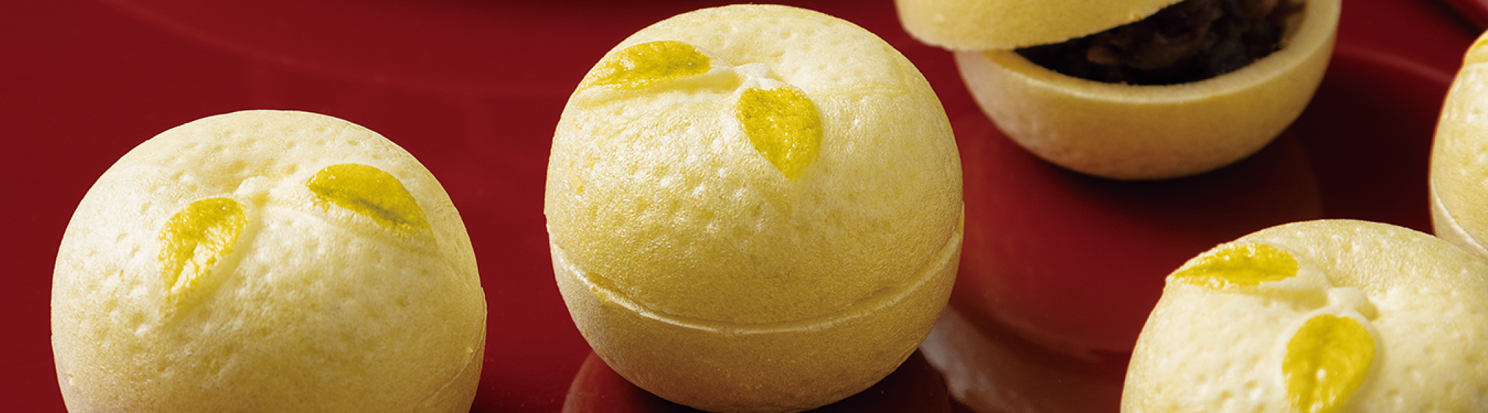 銘菓 柚心は、日本の和菓子のルーツともいうべき柚子の香と姿をそのままに小倉柚子あんをしのばせた気品に満ちた最中でございます。