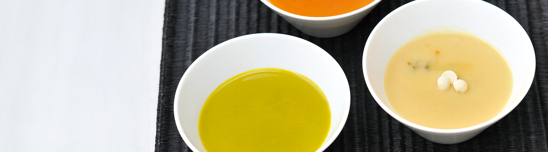 また、それぞれのスープは、お好みの加減に塩を加えていただきますと、パスタソースとしてもお召し上がりいただけます。