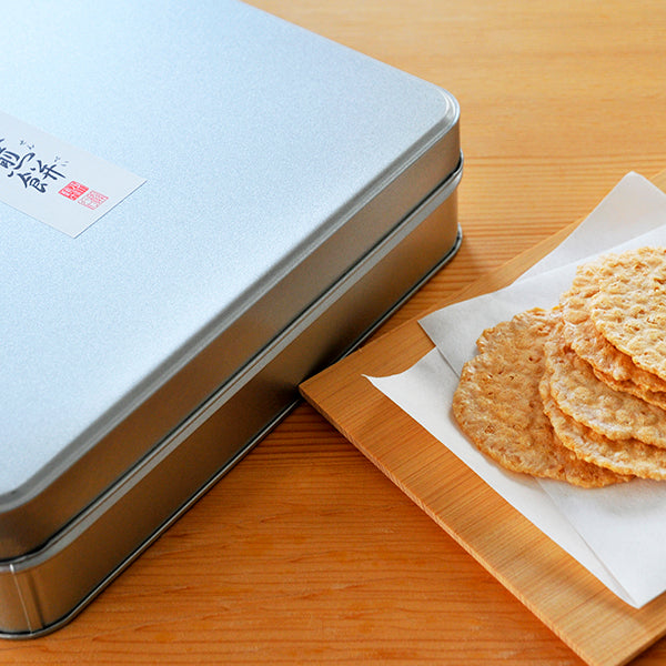 新鮮なアカシャ海老を参宮あわびの煮汁で味を調え、馬鈴薯澱粉を加えて一枚一枚を丹念に真心込めて焼き上げました。