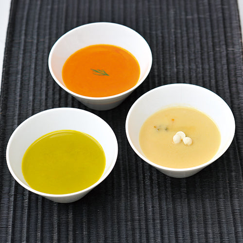 「伊勢えびスープ」「帆立クリームスープ」「鮑グリーンスープ」の詰め合わせ。 特別な日のおもてなしにいかがでしょうか。
