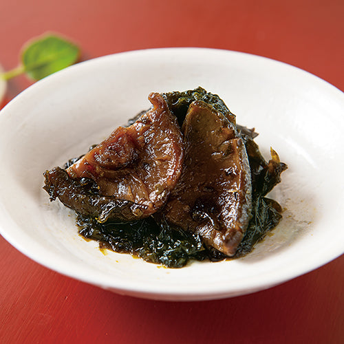 天日干しして旨味を蓄えたどんこ椎茸と三重県産のあおさ海苔を醤油調味液で炊き上げました。
